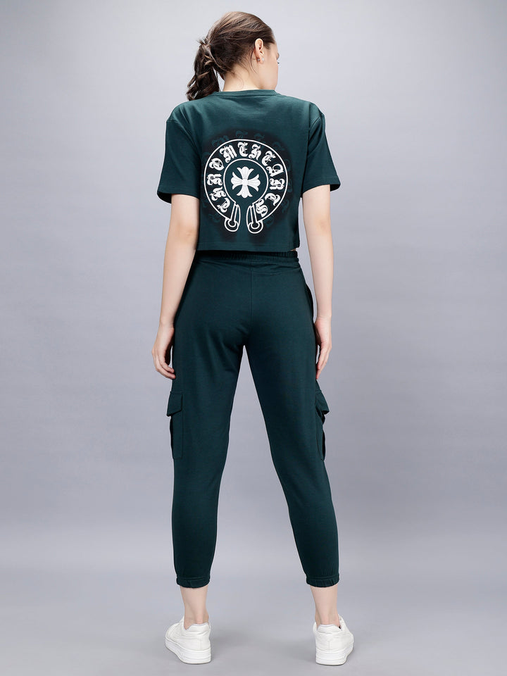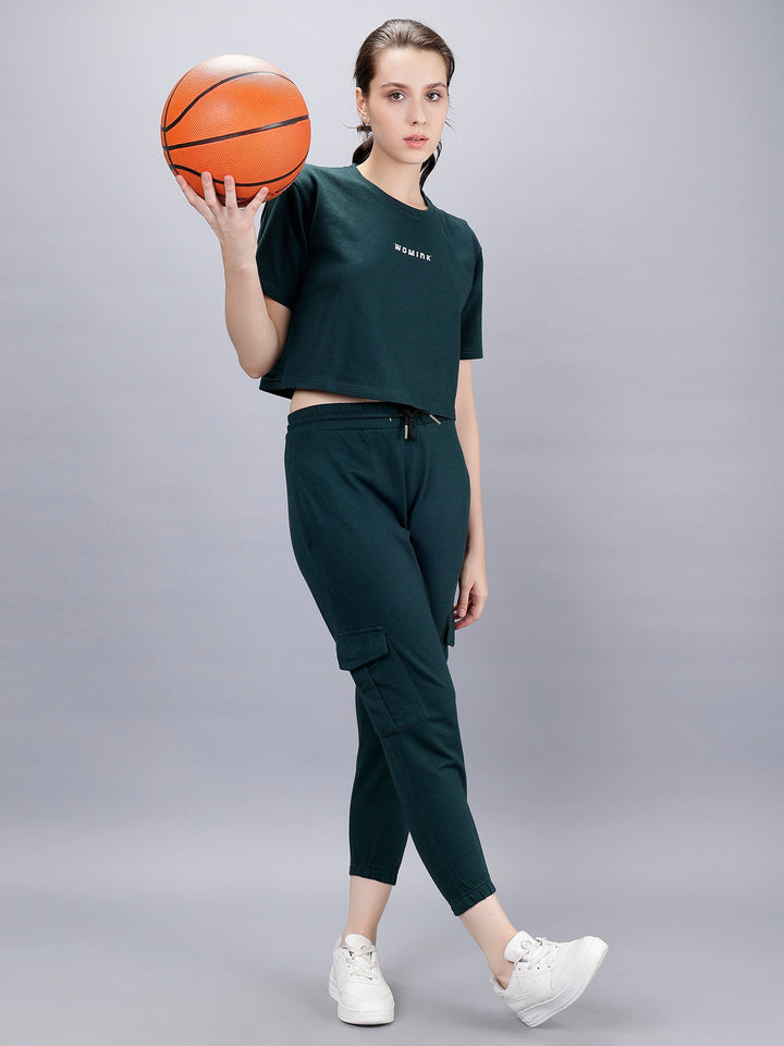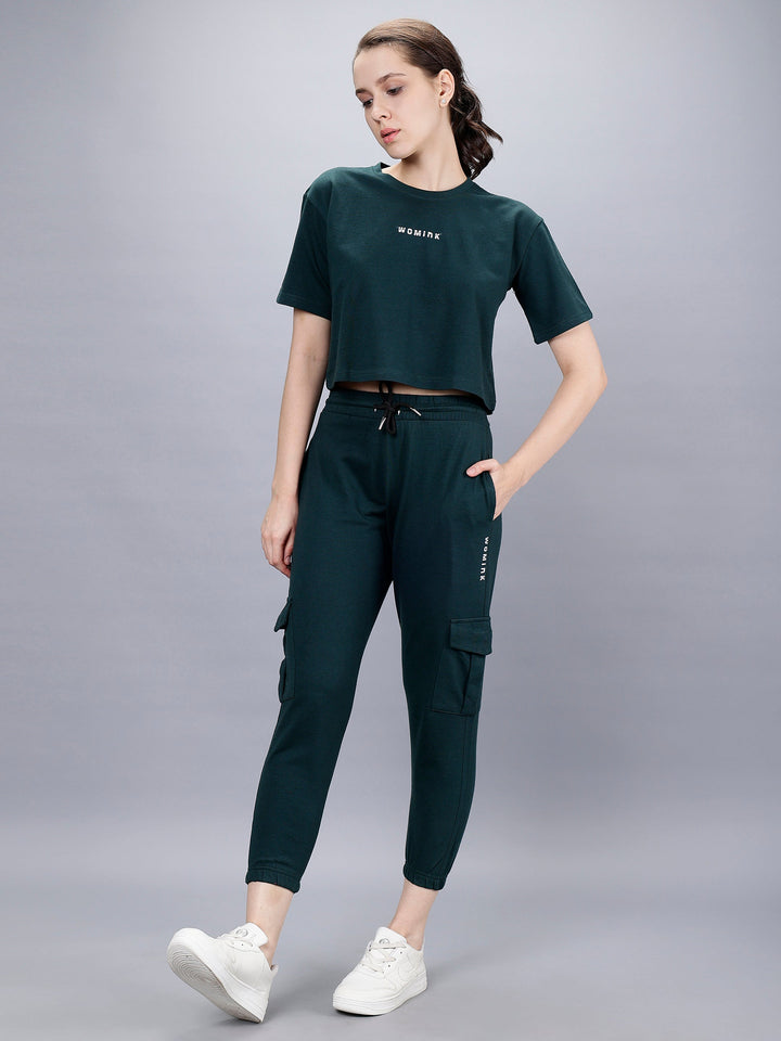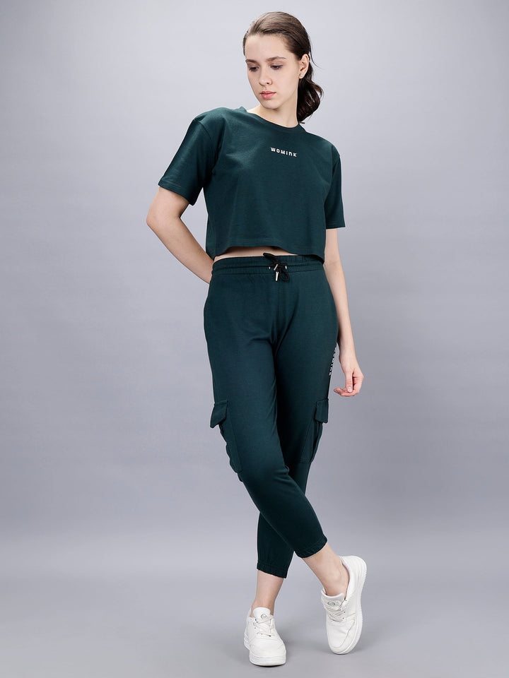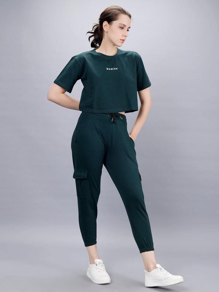 Elight Co-ords set With Oversize Croptop And Cargo Trackpant by WOMINK with one side zipper pocket and premium finish.
