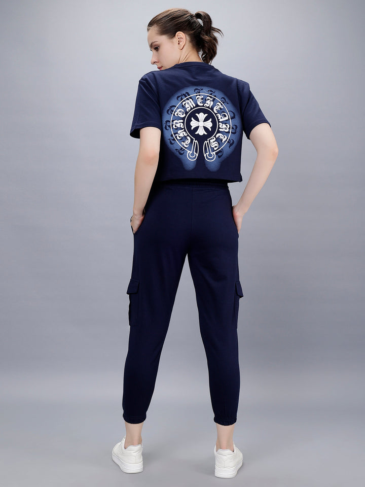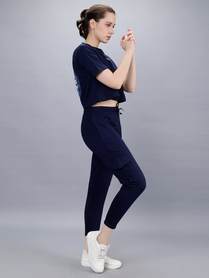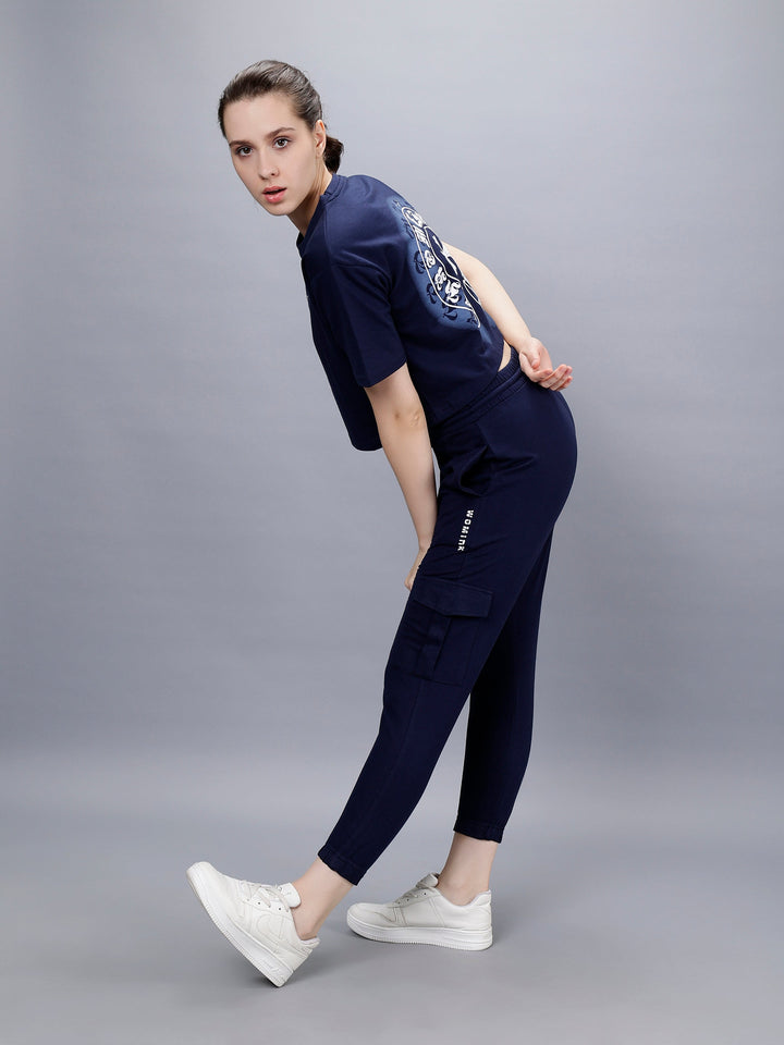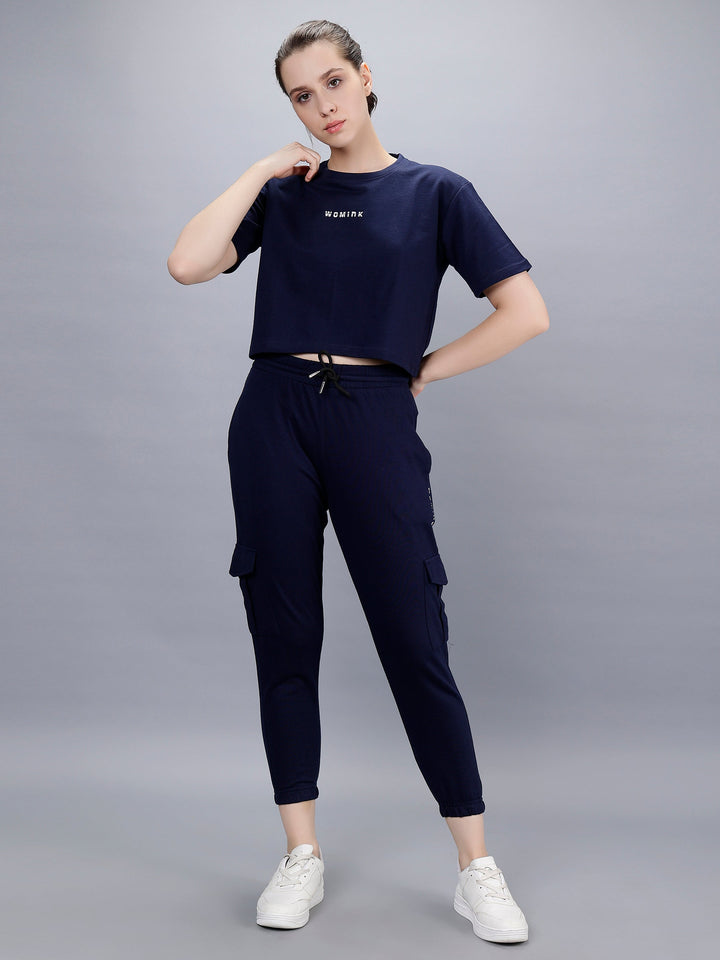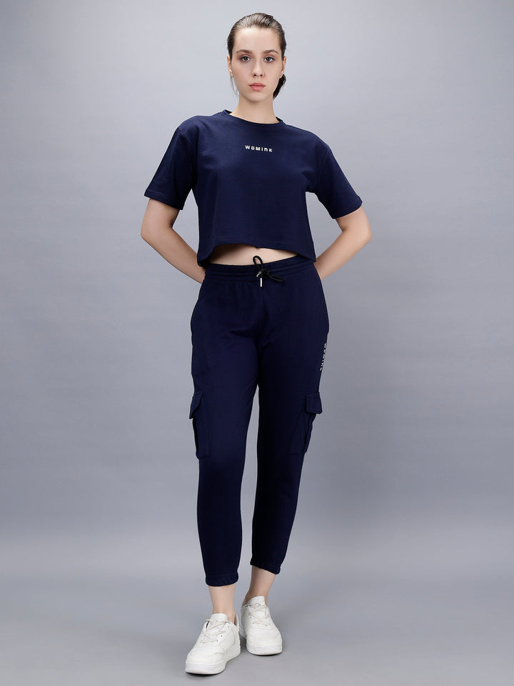Elight  Co-ords set With Oversize Croptop And Cargo Trackpant  by WOMINK with one side zipper pocket and premium finish.